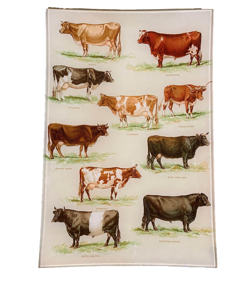 Kaas Glassworks work involves the art of decoupage under glass. Each piece is put together by hand using reprinted images that we have collected from frequent trips to flea markets, antique shows and estate sales. The final result is a sentimental collection of trays, plates, coasters and paperweights. Both decorative and functional, each piece may be used on a table or dresser, or displayed on the wall with the use of a simple plate hanger.