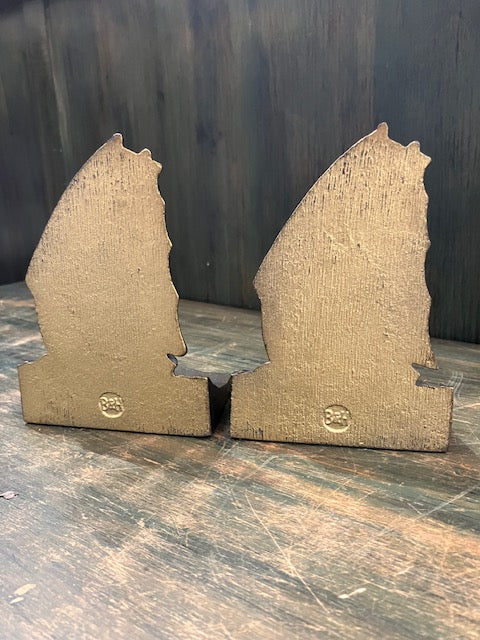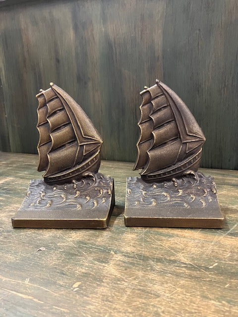 1920s Bradley and Hubbard Brass-Plated Cast Iron Sailing Ship Bookends- a Pair